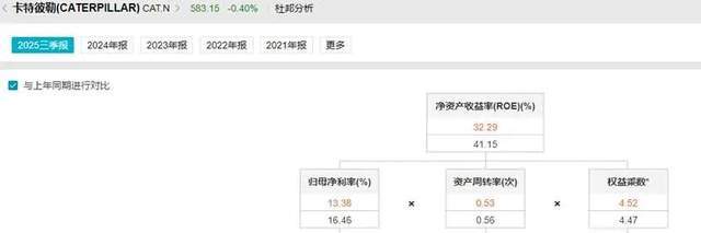 与国际巨头常年在30%以上的ROE相比,三一重工明显逊色很多,核心差异在归母净利率及权益乘数,但我们也看到归母净利率差距较上年同期大幅缩窄。