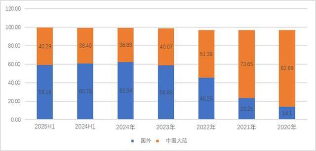至2024年,公司海外收入占比62.34%,同比增长12.16%,国内收入下降2.52%,较上年28.59%的降幅,已大幅放缓,未来进一步下探的空间亦不大。