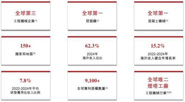 三一中国早在2002年即试水产品出口,近年的战略重心在于实现从出口到出海的飞跃,持续推进全球化战略,带动非洲、中东及拉丁美洲等海外新兴市场的收入快速增长。