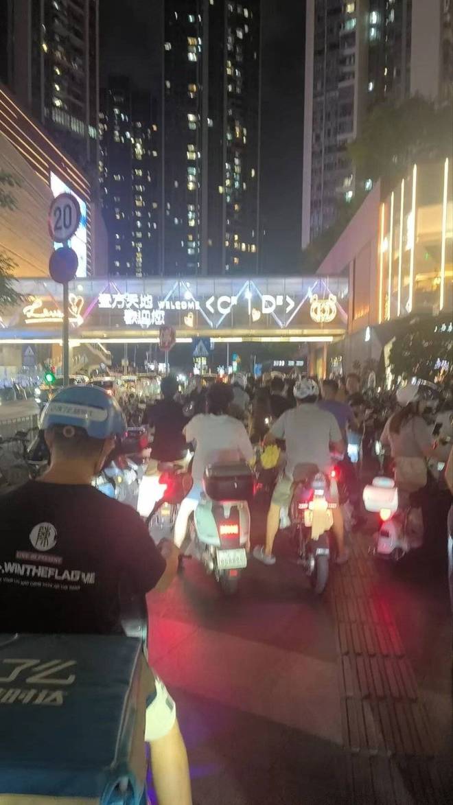 装完货物容不得一点耽搁便出发了,民治大道上,北向水泄不通已经不足以形容当前的路况,公交车排成了火长龙,纹丝不动,而南向则相对空旷。我连尝试正常行驶的勇气都没有,直接从左侧逆行,沿人行道冲上去。本来就不宽的人行道,堆满了横七竖八的共享单车,我小心控制着方向,才好不容易转到展滔大厦的路上。