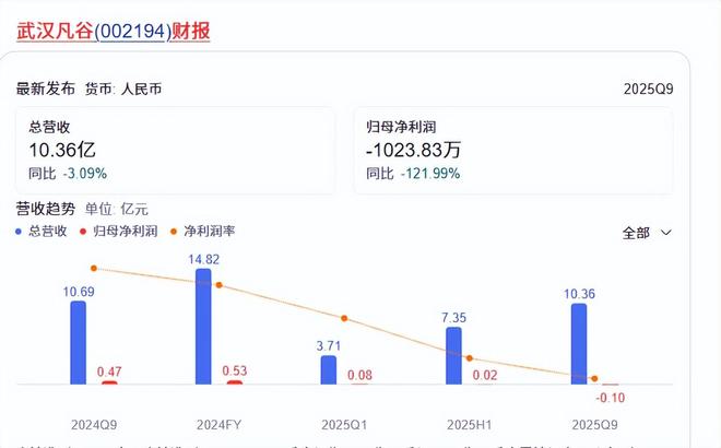 管理层交接后的首份财报表现依旧延续下滑态势,并无任何扭转。2025年三季报显示,公司前三季度实现营业收入10.36亿元,同比下降3.09%;归母净利润亏损1023.83万元,同比大幅下滑121.99%,较上年同期的4656.57万元净利润由盈转亏;扣非归母净利润亏损2178.39万元,同比下降159.09%。