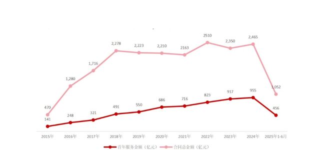 2025年上半年全国环卫服务项目公招口径成交年化总额456亿元,同比下降3%,创下近十年来最大跌幅。