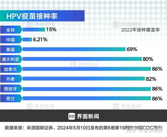 2022年,中国9-14岁女孩的HPV疫苗首针覆盖率仅4.0%,远远落后于全球(61.6%),三针接种率更是低至0.31%。