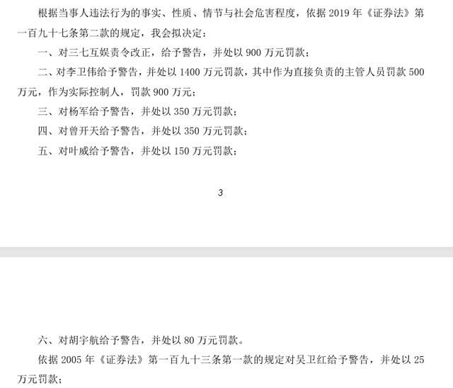 三七互娱6 年 4 大违法:董事长李卫伟等6 人被证监会罚款 3255 万-国际投行报告