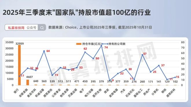 2025年三季度末,“国家队”合计持股市值超10亿元的公司有163家,超100亿元的公司有33家。