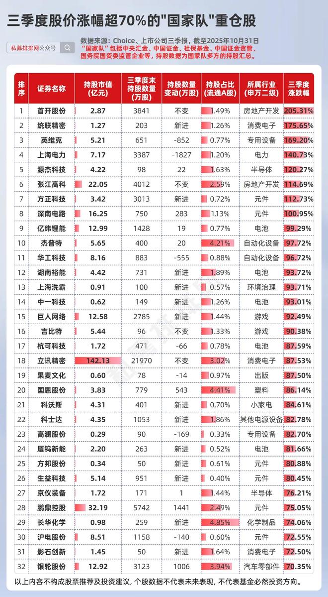 截至10月31日,A股公司的2025年三季报已经落下帷幕。随着三季报的披露,A股“国家队”的最新持仓也随之浮出水面。