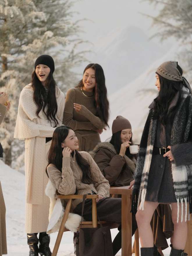 直播中,一群女孩在火车里面相互喝着茶,聊着天,在雪地里松弛聚会。松弛女性、温柔且有力量的群像是致知ZHIZHI在大秀中特意埋下的记忆点。