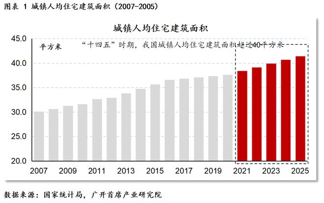 未来城镇化建设仍能催生一定规模的城镇人口住房需求。尽管近年来城镇化建设进程整体放缓,但并不等于增量需求的消失。理论上长周期住房需求=全国总人口*城镇化率增量*人均住宅面积增量。根据联合国预测,到2030年左右我国城镇化率将达到70%左右,这意味着“十五五”时期,我国城镇化率仍有大约2~2.5个百分点的增长空间。随着改善性需求提升,未来我国人均住宅面积将进一步增大。历史数据显示,人均住宅面积增量与城镇化率增量关联度极高。将两个变量做简单线性回归分析,数据选取1998年~2024年,发现其相关性超过97%,其他统计指标均表明两者关系密切,方程斜率为0.63,即自1998年房改后所经历的26年时间内,我国城镇化率每增长1个百分点,新增人均住宅面积约0.63平方米。基于上述分析,预计到2030年,我国城镇人口将达到9.83亿人,城镇人均住宅建筑面积将升至44.6平方米,人均住房面积持续上升。