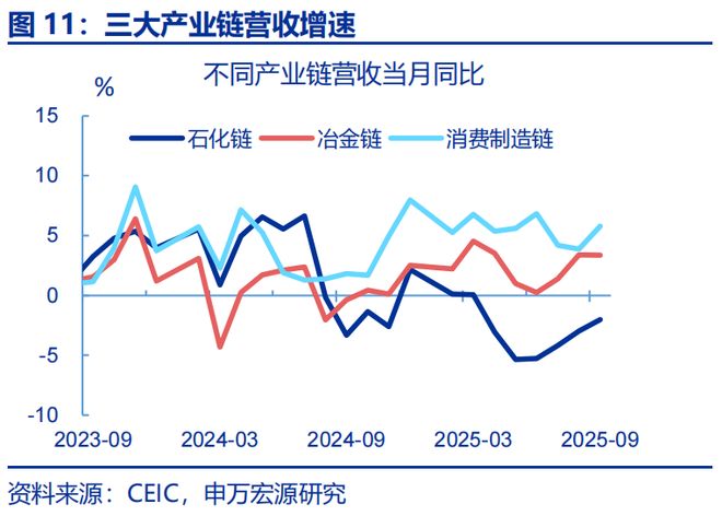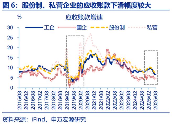 需求:需求压力或更多指向制造业,主要表现为企业加快清偿欠款,对投资产生额外拖累。近两年部分企业以欠款形式增加投资,本轮化债也要求企业加快清缴欠款;由于当前企业盈利偏弱,企业或将用于投资资金清缴欠款,导致固定投资回落。2025年6月来应收账款增速明显下滑,与固定资产投资回落的时点基本一致;9月其进一步降至5.7%,短期清缴欠款或仍拖累制造业投资。