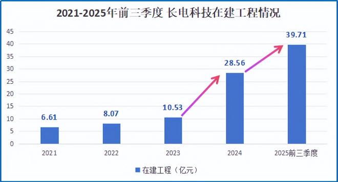 2021-2025年前三季度,长电科技的在建工程金额从6.61亿一路攀升至39.71亿。尤其从2024年起,扩建步伐明显加快,在江苏、上海等多个基地同步推进新厂建设。