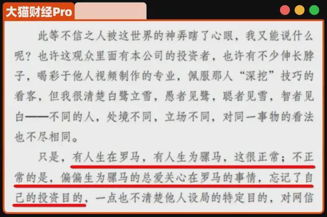 他发了一个3000字的长文,主要是说公司怎么牛、老板怎么厉害,但就是不说矿在哪儿,倒是没忘了怒怼股民,说你们生为骡马就不要管罗马的事儿了。