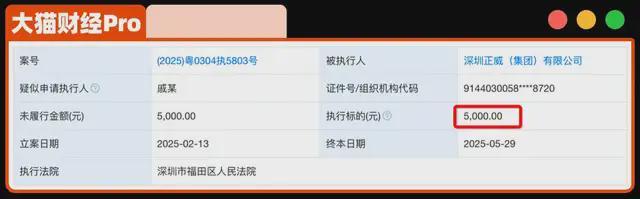 天眼查信息显示,正威集团终本案件90起,关联总金额99.8亿,而最小的一笔金额只有5000元。