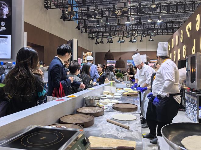 农食产品展区,现场大厨“秀”起来。(中国商报记者 周子荑/摄)