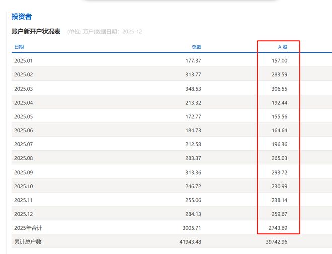 业内分析人士认为,2025年A股新增开户数持续增长,直接体现了A股市场的长期投资价值和旺盛活力。
