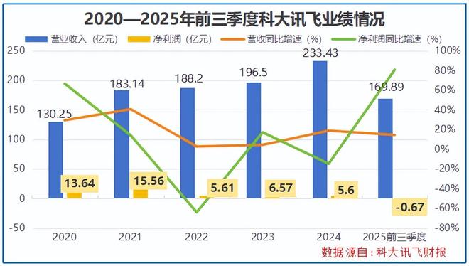 不过,2025年前三季度,科大讯飞的净利润却亏了0.67亿元,这还是在当期收到2.68亿元补助的情况下,“增收不增利”的问题越来越明显。
