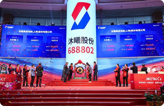 仅仅12天后,12月17日,上市首日的沐曦股份暴涨692.95%,总市值突破3300亿元,其涨势甚至比摩尔线程更惊人——按104.66元/股的发行价计算,股民打新中一签便可盈利近30万元,堪称”大肉签”。