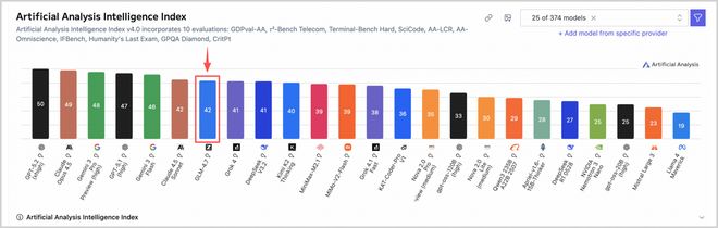 2025年12月,智谱新一代基座模型GLM-4.7在模型综合能力榜单Artificial Analysis登顶全球开源模型与国产模型双料榜首。