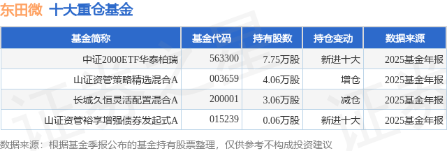 重仓东田微的公募基金请见下表: